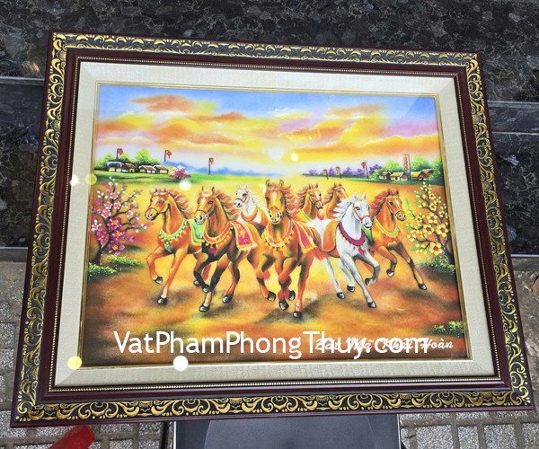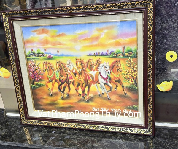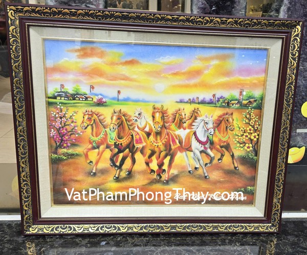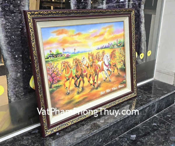 + Chất liệu và hoàn thiện : Tranh bát mã khải hoàn- tranh đá quý