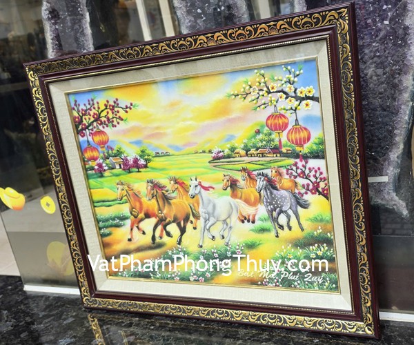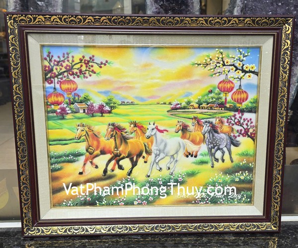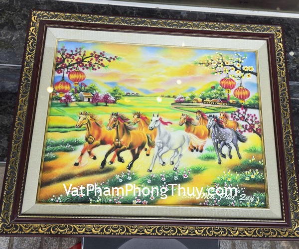 + Chất liệu và hoàn thiện : Tranh Bát Mã Phú Quý – tranh đá quý