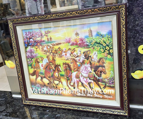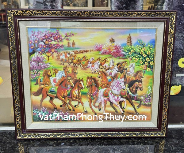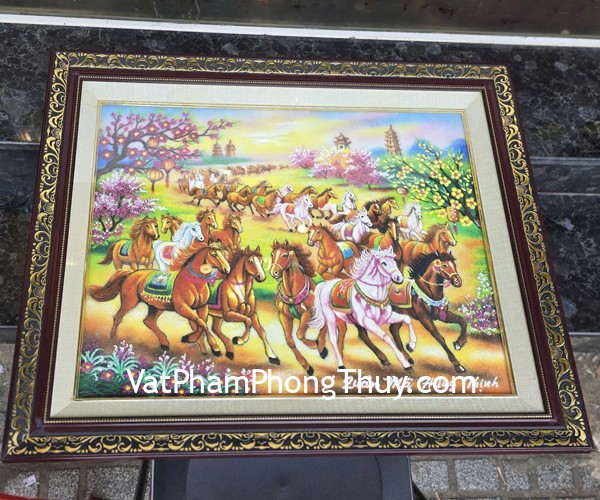 + Chất liệu và hoàn thiện : Tranh quần mã hưng thịnh – tranh đá quý
