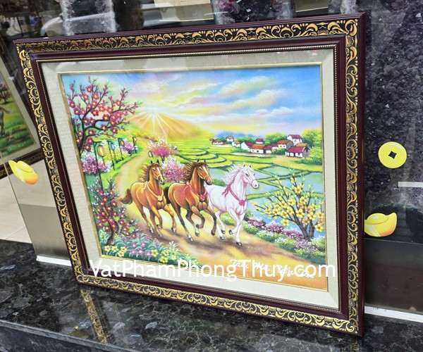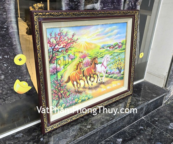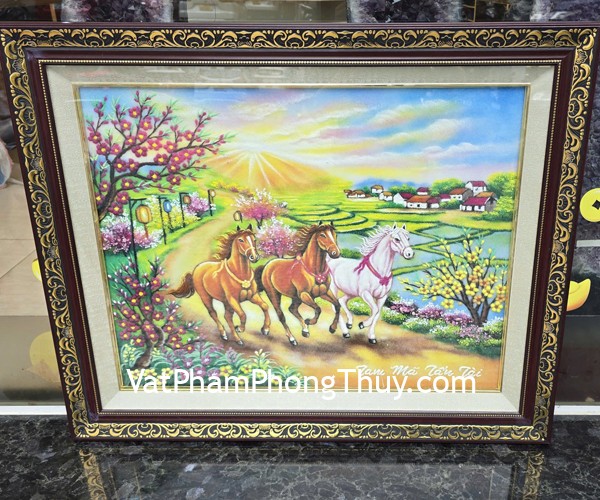 + Chất liệu và hoàn thiện : Tranh tam mã tấn tài- tranh đá quý